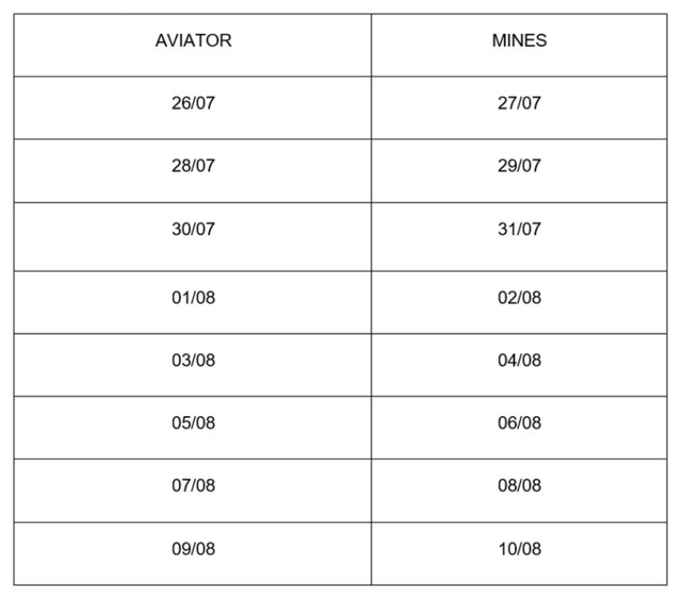 A distribuição de free spins será nos jogos Aviator e Mines, a depender do dia da premiação no Torneio Top 3, conforme abaixo: