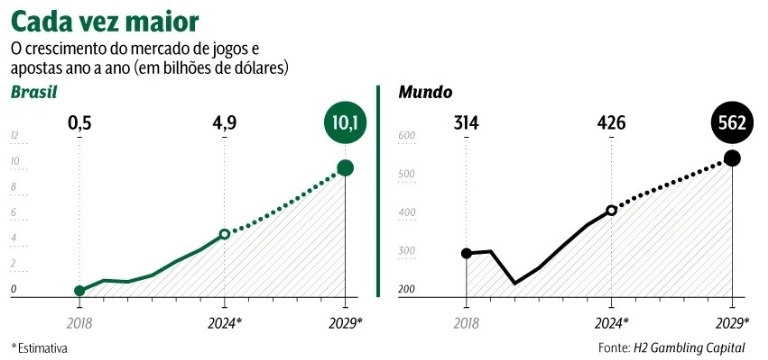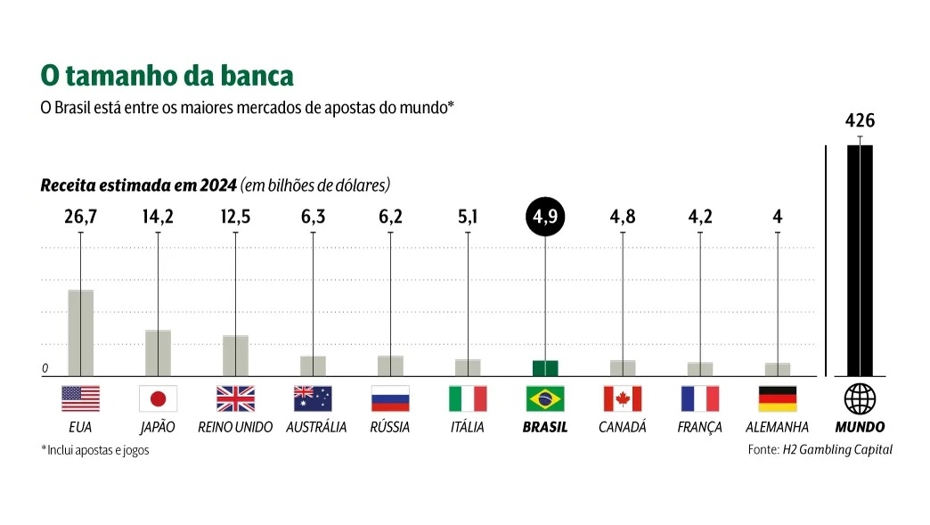 O Brasil se tornou um dos principais mercados do mundo para as apostas online. De acordo com uma pesquisa divulgada em outubro do ano passado pelo Instituto DataSenado, entidade ligada ao Poder Legislativo, mais de 22 milhões de pessoas fizeram uma aposta naquele mês no país, sendo que a maioria dos apostadores (56%) são da faixa de 16 a 39 anos.