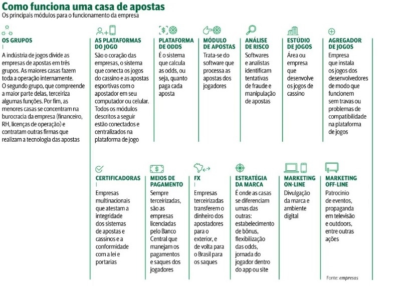 O segundo grupo engloba companhias que compram os jogos de cassino e as plataformas de prêmios e apostas de grandes multinacionais, mas têm em seus quadros equipes de marketing e de serviço de atendimento ao consumidor.