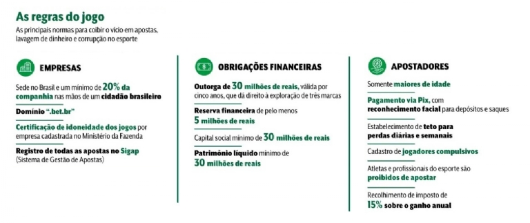 A explosão das apostas esportivas tem como marco zero uma lei sancionada em 2018 pelo então presidente Michel Temer, que legalizou as chamadas apostas de cota fixa, ou seja, relativas a eventos reais ou virtuais em que, no momento de sua realização, está definido o prêmio em caso de acerto do prognóstico. O texto exigia que o Ministério da Fazenda regulamentasse a modalidade em até quatro anos, mas a pressão de parlamentares da bancada evangélica impediu qualquer avanço nesse sentido durante o governo Bolsonaro.