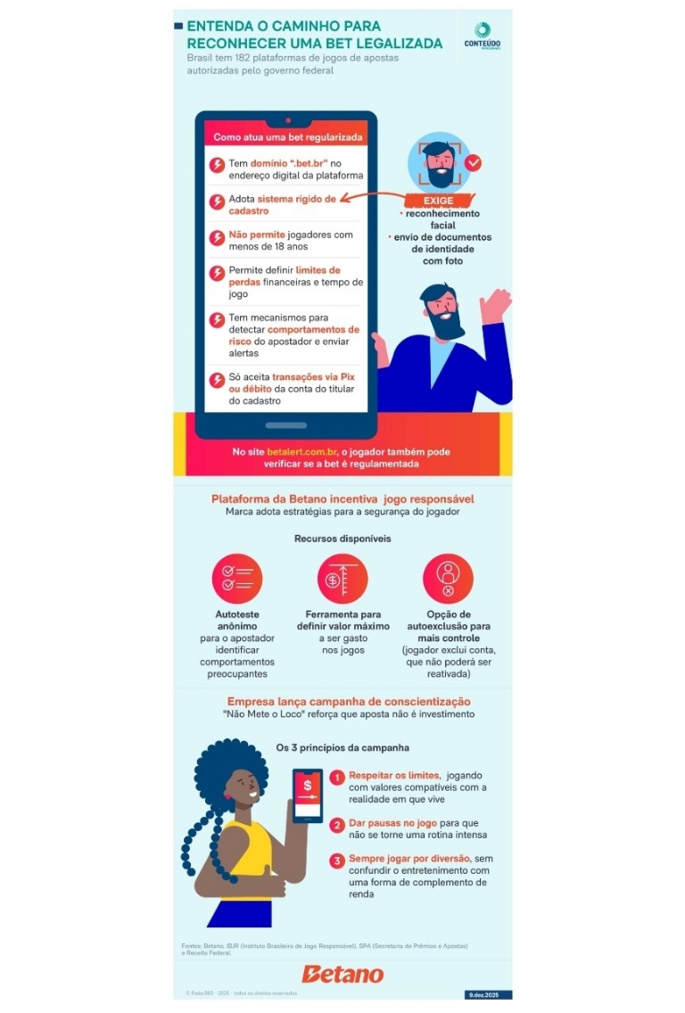 O órgão reforçou que apenas empresas de apostas online autorizadas por essa secretaria podem operar nacionalmente. Além disso, as plataformas, por lei, não podem aceitar depósitos provenientes de contas não cadastradas nem realizar pagamentos ou enviar prêmios em dinheiro vivo ou por boleto bancário. Só são aceitas transações feitas via Pix ou débito. O setor dispõe, ainda, de um fundo garantidor de crédito, similar aos das instituições bancárias.