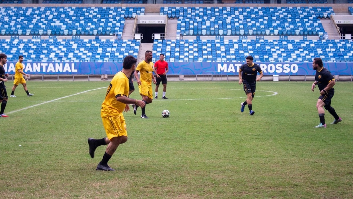 Entre os convidados em campo estiveram jogadores conhecidos do público, como Maicon, Diego Souza, Valdívia e Júnior, que participaram do jogo ao lado dos convidados. Os times foram divididos entre amarelo e preto, batizados de forma descontraída como Humilde Sports Clube e Galãs Society, reforçando o clima leve e de confraternização do encontro.