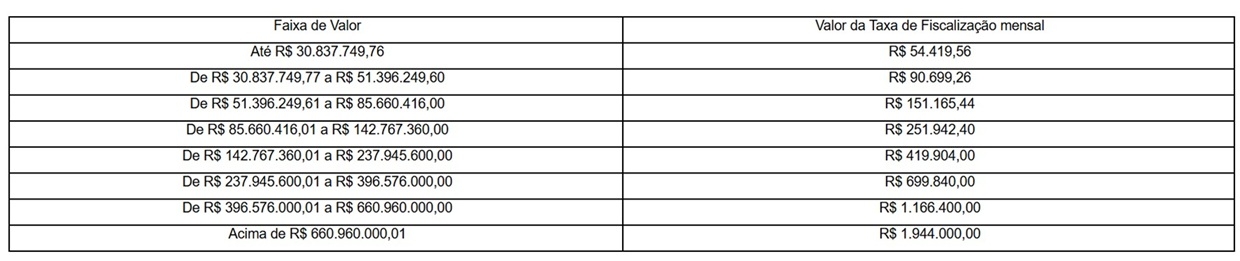 A Instrução Normativa determina que a taxa de fiscalização incide mensalmente sobre o produto da arrecadação após as deduções legais estipuladas na Lei 13.756 e de acordo com as faixas de valores destinados à cobertura de custeio e manutenção do operador.