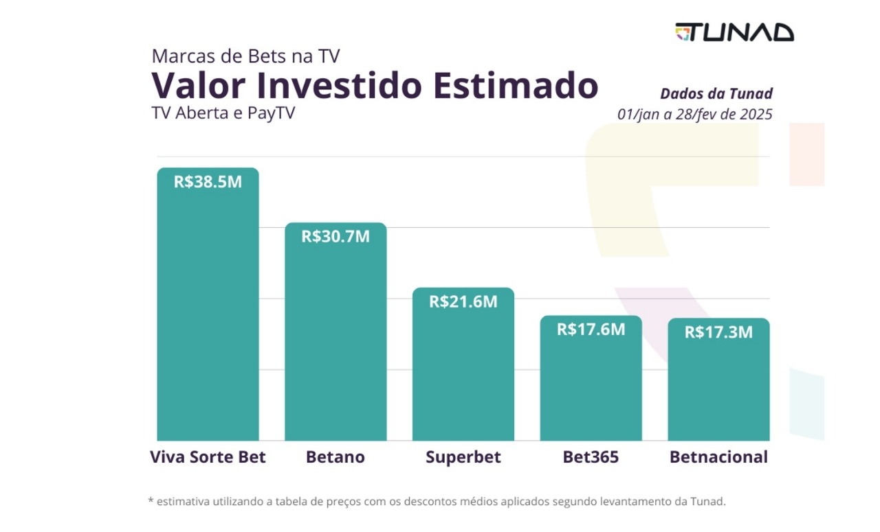 Após um estudo realizado pela Tunad no ano passado, que revelou quais foram as casas de apostas esportivas que mais investiram na TV linear em 2024, este novo levantamento analisa o desempenho dessas marcas no primeiro bimestre de 2025.