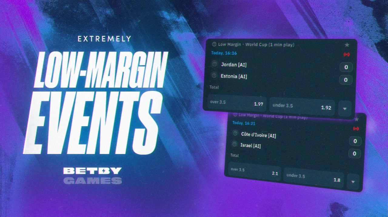 Os eventos de margem baixa foram integrados primeiramente ao feed de eSports proprietário da BETBY, BETBY Games, e estão disponíveis exclusivamente para apostas pré-jogo no formato Blitz Tournament para basquete, com outros formatos de esportes e-sim também esperados para oferecer eventos de margem baixa em breve.