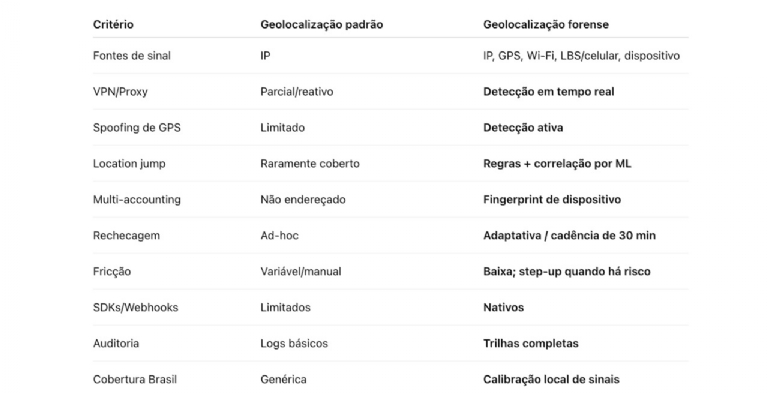 Comparativo: geolocalização padrão vs. Forense