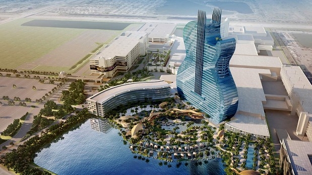 O projeto do "hotel-guitarra" tem custo estimado de US$ 1,5 bilhão e outros números estridentes. A estrutura de 137 metros de altura, coberta por imensas janelas espelhadas, comportará 638 quartos, entre habitações de categorias superiores e suítes. As reservas poderão ser feitas a partir do dia 24 de julho.