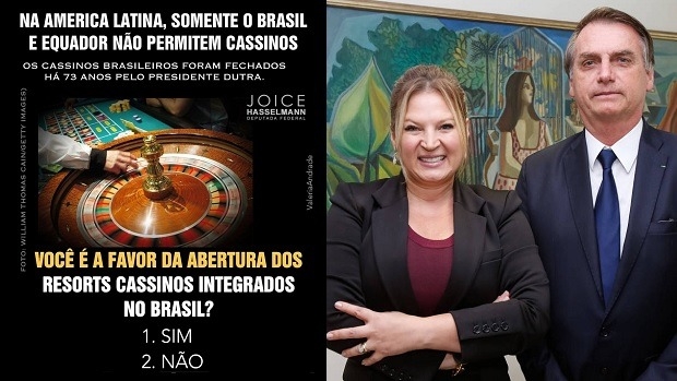 Pelo Twitter, Hasselmann também fez a consulta: “Na América do Sul, além do Equador, somente o Brasil não permite cassinos. Eles foram fechados há 74 anos pelo presidente Dutra. Você é a favor da reabertura dos cassinos?”, pregunta desde ontem a tarde a deputada em seu perfil oficial.