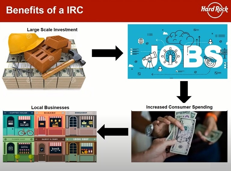 De acordo com ele, entre os benefícios da implantação de um cassino em resort integrado destacam-se os altos investimentos, que pode chegar a US$ 1,1 milhão por quarto, a grande geração de empregos e forte impacto econômico e de desenvolvimento local.