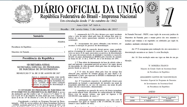 In a meeting held on August 23, 2017, the Council of the Investment Partnership Program (CIPP) approved the concession of the Exclusive Instant Lottery (LOTEX). The concession term will last for twenty-five years and, as defined by law, gross revenue from ticket sales will be split three ways: 65% for payout; 18.3% for the concessionaire; and 16.7% for the Federal Government.