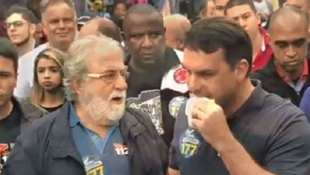 The agenda included walking alongside the mayor of the city, Farid Abrahão David (PTB), brother of the jogo do bicho operator (bicheiro) Aniz Abraham David, the Anísio. Flávio Bolsonaro, a Senate candidate, campaigned and had a private meeting with two family members involved in the game. Also participated the federal deputy Simão Sessim (PP-RJ), cousin of the bicheiro. In images published on a social network of Flávio it is possible to see the son of Bolsonaro walking on the city sidewalk between Farid Abrahão and Sessim, who wear stickers on the chest with the number of the candidate for senator.