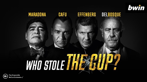 “Each of the football legend suspects, feature across all channels of the campaign from TV, out of home and online. From the teaser phase all the way through to the reveal of who the dastardly thief was, the audience will be left guessing” details bwin marketing launching “Who Stole the Cup?”.