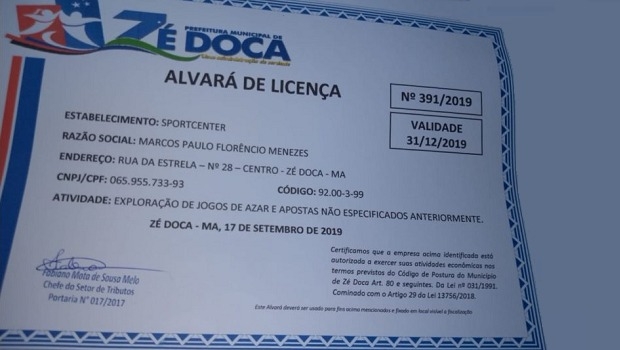 On September 17, the head of the Municipal Tax Sector, Fabiano Melo, issued a permit authorizing to Sportcenter to explore “gambling and games of chance not previously specified.”