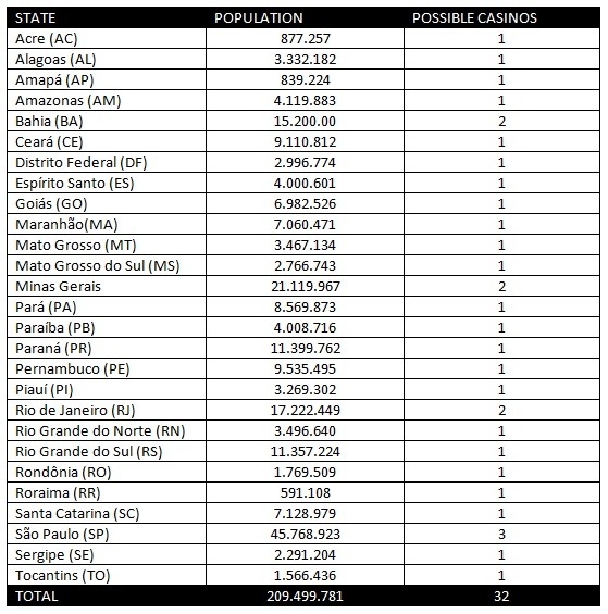 Following these criteria, the following chart shows how many casinos could receive each Brazilian state in case of approval of the new project. Check out: