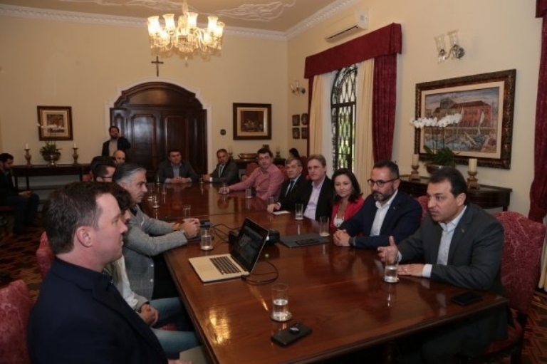 Petry Arena President, Sandro Petry: Santur President Flavia Didomenico; and Secretary of International Relations, Derian Campos, also attended the meeting, along with Senator Dario Berger.