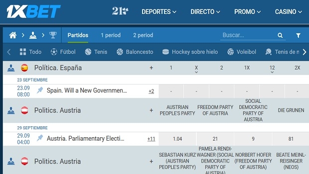 The new section of the 1xBet website has been designed to be as informative and user-friendly as possible. All the markets are sorted into categories and the One-click bet feature is enabled for most of them. Depending on the country, 1xBet offers various bets on political events, such as: