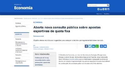 The purpose of the public consultation is to collect subsidies for the improvement of the Decree Draft regulating the Fixed Odd Sports Betting, pursuant to Chapter V, Law No. 13,756, of December 12, 2018. This Decree Draft is the result of 1849 contributions to the regulation of fixed odd sports betting in Brazil received in the context of the 1st Public Consultation on the subject, as well as the accumulated knowledge of the regulation area of this Ministry over the years.