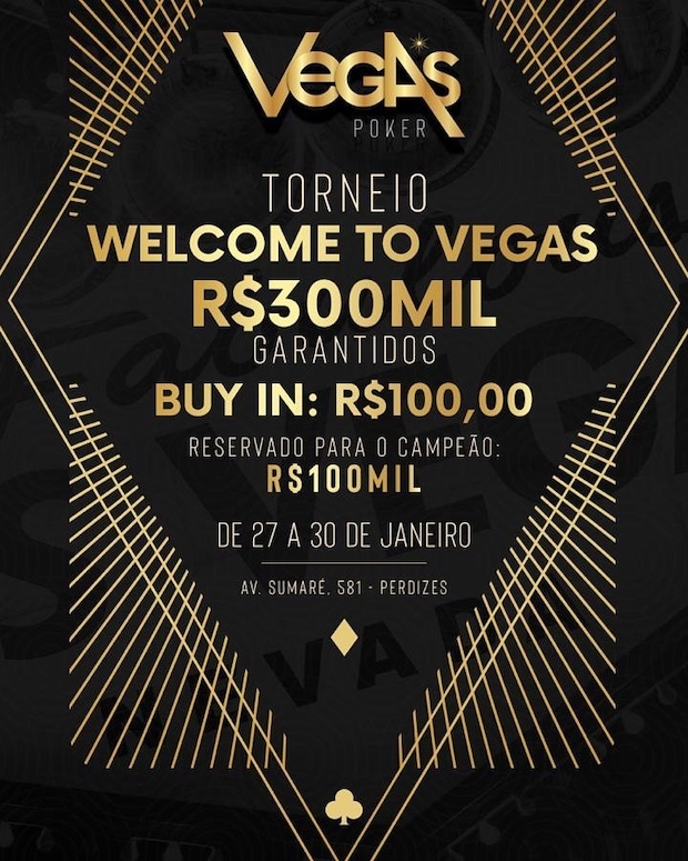 The “Welcome to Vegas” tournament, created by Vegas Poker, will give R$ 300,000 (US$ 72,000) as a prize to the winners. With a buy-in value of R$ 100 (US$ 24), the player can guarantee R$ 100,000 (US$ 24,000) by winning the competition, which will last from the 27th to the 30th of January.