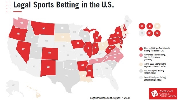 According to the American Gaming Association, sports betting revenue is up 18.9% for the first seven months of the year compared to 2019, despite the cancellation of some three months of professional and college sports due to the coronavirus pandemic. The AGA attributed the growth to the opening of nine new sports betting states in the last 12 months. Prior to COVID-19, revenue at commercial sportsbooks was up 235.5% in January and 64.5% in February.