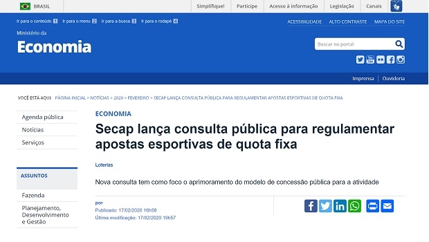 The Secretariat for Evaluation, Planning, Energy and Lottery (Secap) of the Ministry of Economy launched this Monday (17/2) a new public consultation to collect suggestions from society regarding the regulation of fixed-odds sports betting. Contributions may be sent until next March 6th.