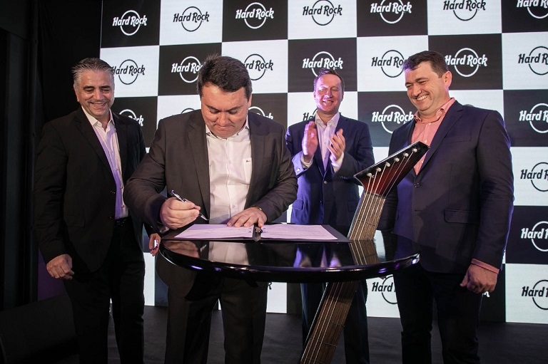Business leaders, politicians and artists participated at night in São José in the presentation event of the Hard Rock International project for Greater Florianópolis. The American multinational present in 76 countries put its legendary brand and know-how to form the Hard Rock Live Florianópolis entertainment complex, which will include the current house of events, a hotel of 300 apartments, store and brand’s restaurant, among other attractions.