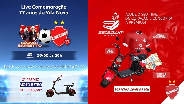 To celebrate Vila Nova's 77 years, estadium.bet (Master Sponsor) called the mass to play together again. There are R$ 15,000 in prizes (retro motorcycles, autographed jerseys, cash) for ‘Tigrão’ fans, who can get tickets at different prices paying with a credit or debit card Visa, MasterCard, or through Caixa or Mercado Pago, among others options.