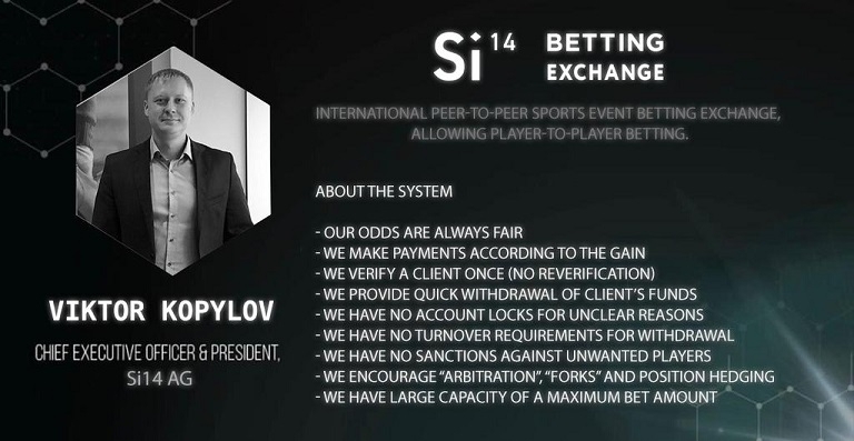 Kopylov stated: “Si14 does not make preferred sports. We focus on all markets for sporting events. Of course, the main sports will be highlighted with a wider service line such as – Football – Tennis – eSport – Volleyball – Ice Hockey – Horse racing and others. We have been in the betting market for a long time and we know the pain of the industry. With this information, our company has taken into account all points and made a platform from which no one will leave. Besides, we have innovative solutions that are not found in the betting market.”