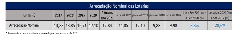 When making the comparison between the nominal collection for the period January -September 2021, there was a growth of 8.3% compared to the same period in 2020 and 28.6% compared to 2017. For the Undersecretary of Awards and Drawings of the ME, Waldir Marques, the numbers indicate the solidity of the national lottery market, despite the difficulties faced by the COVID-19 pandemic.