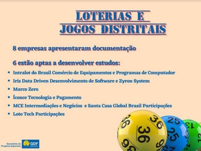 This is the second phase of the process that ends with the choice of the company that will operate lotteries and games in Brazil’s DF. “These are the studies that will define what is the best way to explore the lottery. For now, it is an embryonic issue, but soon we will have a detailed project,” clarified Roberto.