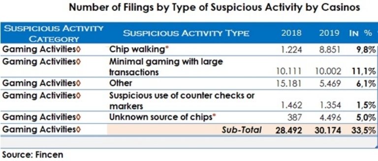 This has direct relationship with other suspicious activity type which is the unknown source of chips.