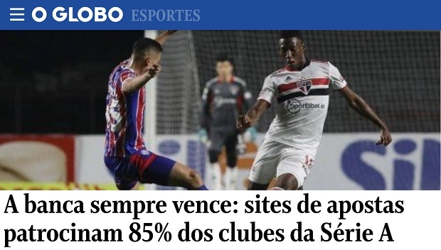 In Serie B, there are eight brands for the same number of clubs. In addition, the sites sponsor football federations, such as São Paulo and Sergipe. They are also on advertising boards in stadiums and in commercial breaks on specialized TV channels. For those who follow sports, they have become ubiquitous.