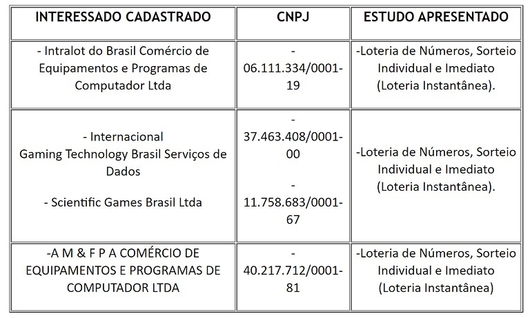 All of them, according to what was published in the Official Gazette, generically dealt with the Conventional Lottery theme, “not delving further into the studies, suggesting that its exploration can be made possible in conjunction with the Instant Lottery. They also considered, for the business model to be adopted, the availability of these modalities, in addition, in digital media.”