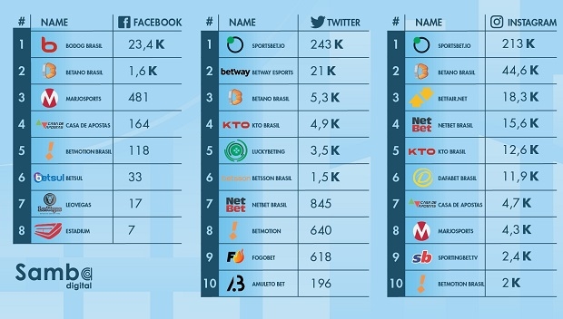 On Instagram it was Lucky Betting, with 148 posts. Betcris was second: 125. On Twitter it was Betway eSports BR with 1158 posts, followed by KTO Brasil with 973.