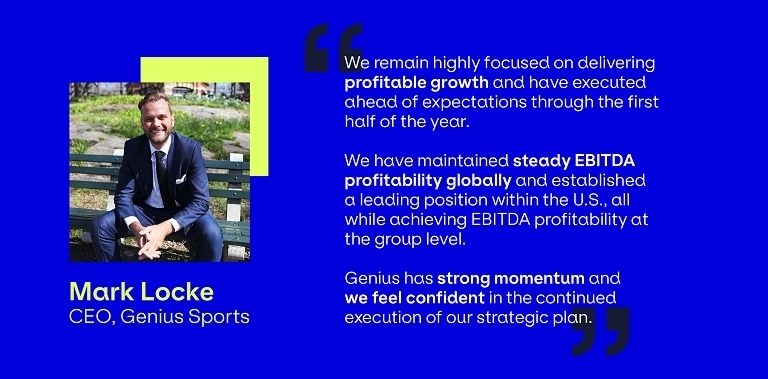 “We remain highly focused on delivering profitable growth and have executed ahead of expectations through the first half of the year. We continue to utilise our partnerships and unique technology to yield strong results and build upon our commercial strategy,” said Mark Locke, Genius Sports co-founder and CEO.