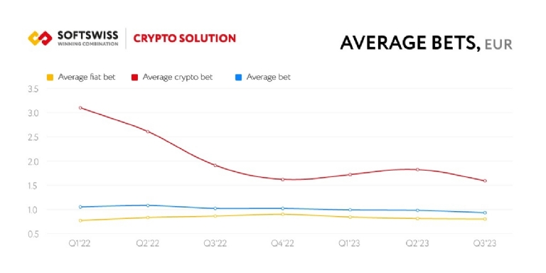 Andrey Starovoitov, Co-CEO at SOFTSWISS, comments: “An 18% increase in crypto bet sums may appear very modest when juxtaposed against a more substantial 45% expansion in fiat bets during the first three quarters of 2023. Taking into account the state of crypto in other spheres, such as fundraising, where the third quarter showed its worst results since the end of 2020, the position of cryptocurrencies in iGaming could be evaluated as comparatively stable at the moment.”