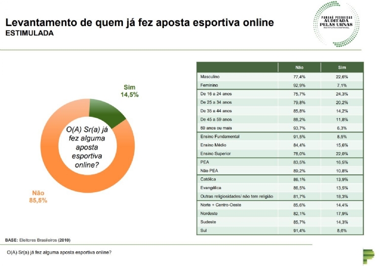 The Paraná Institute released this Wednesday (22) a survey on sports betting in Brazil that indicates that 55.2% of those interviewed are in favor of the federal government collecting taxes form companies of the sector. Another 27.9% is against it, while 16.9% did not know/did not give an opinion.