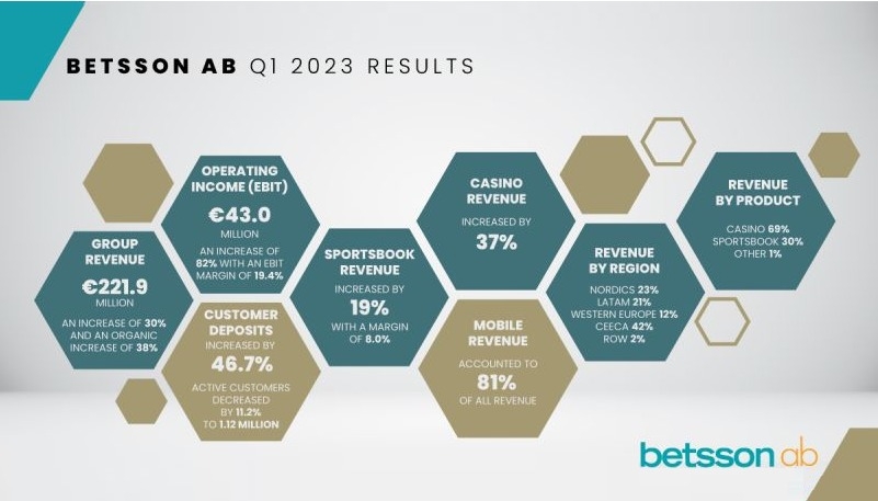 Betsson group enjoys a positive first quarter of the year, highlighting in its interim some key data: