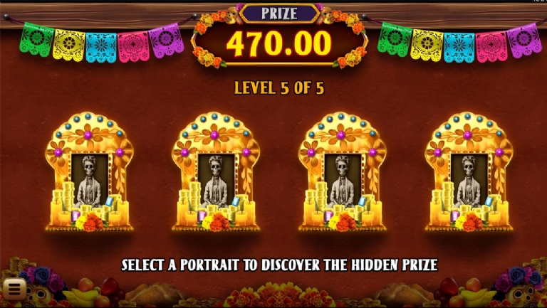 The bonuses are divided into four striking possibilities for the bettor. When winning 6 skulls, the player has his prize multiplied by 60. The next level, with 7 skulls, raises the bet to 160 times. With 8, the player wins a jackpot of 1000 times his bet and, the dreamed Catrina, won with 9 skulls, multiplies the bet by 5000.