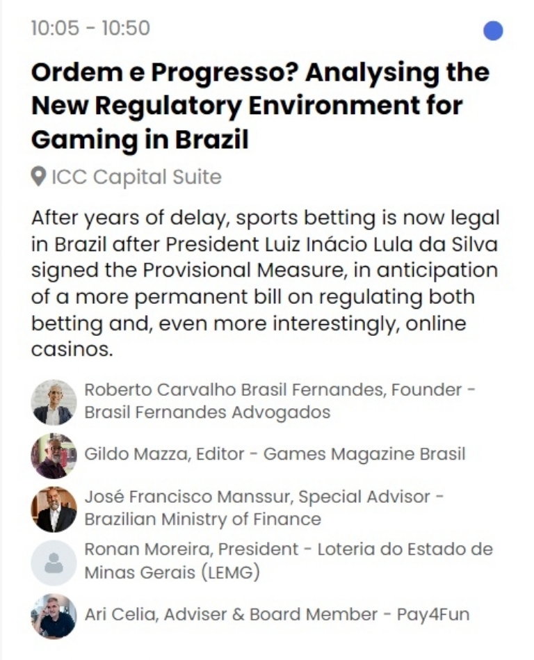 On February 6th, starting at 10:05 AM (London time), the panel "Order and Progress? Analyzing the New Regulatory Environment for Gaming in Brazil" will take place during ICE VOX. The goal is to provide attendees with the latest updates on the now regulated Brazilian market for sports betting and online gaming.