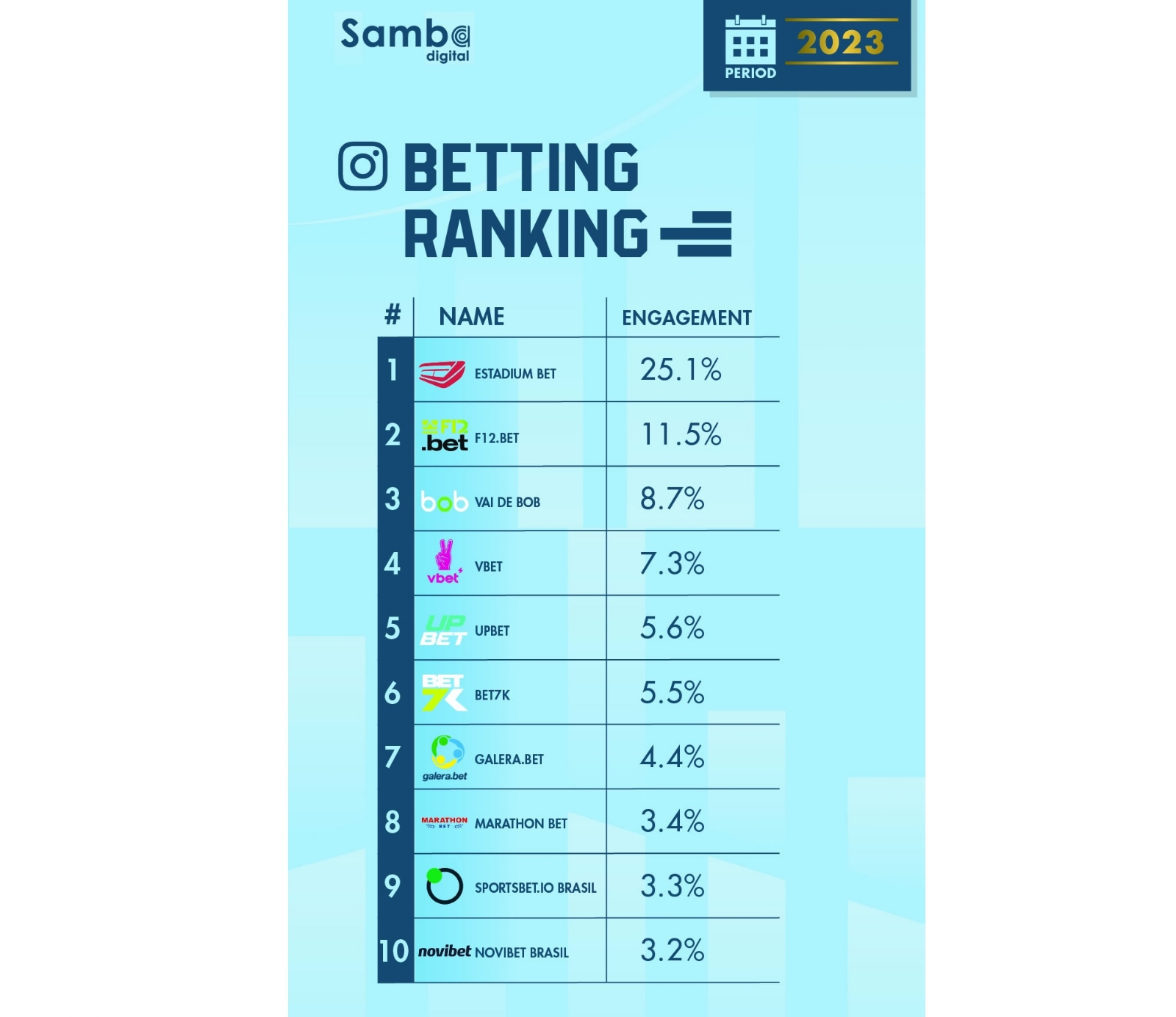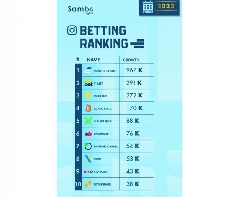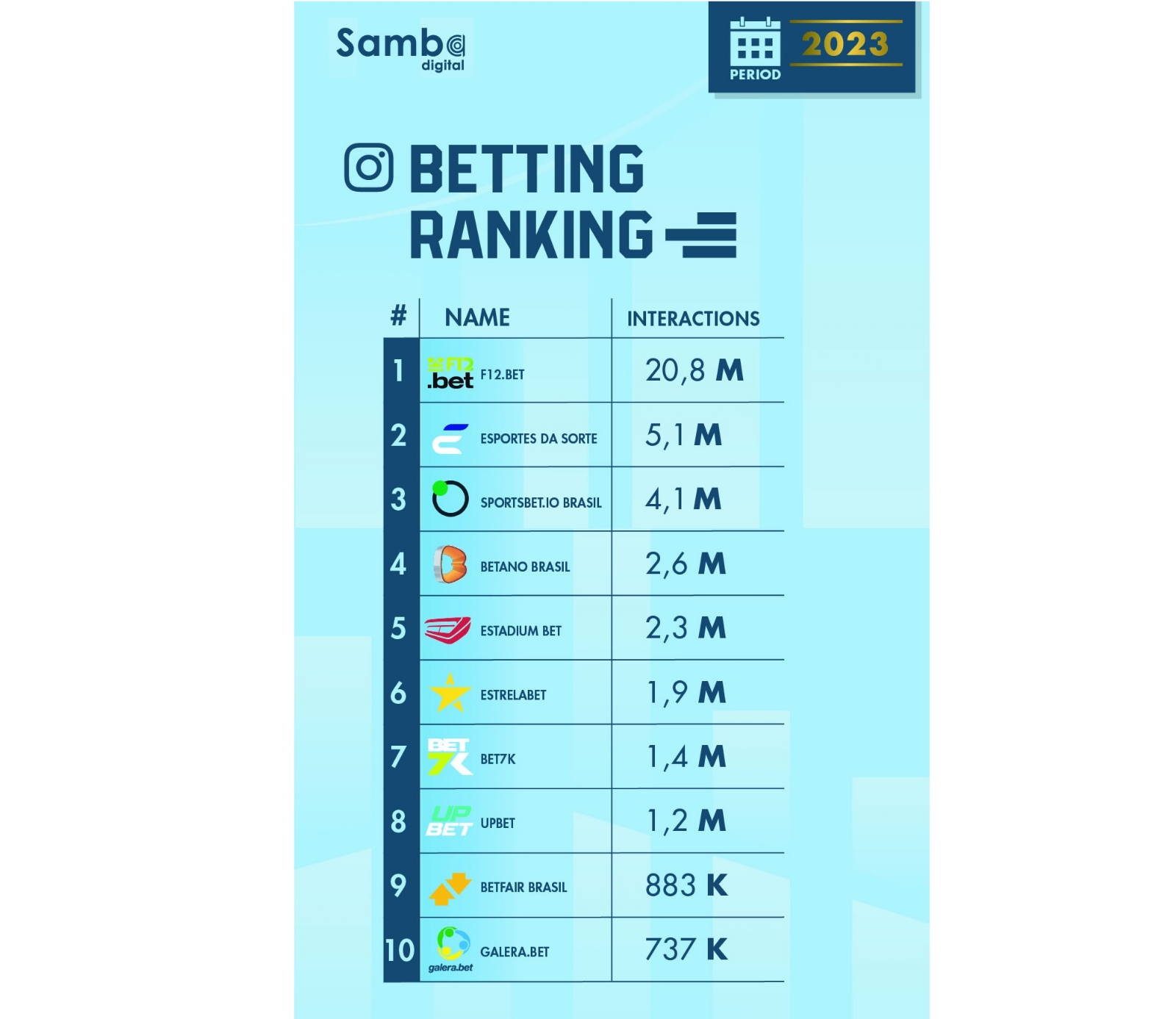 Sports betting has been a part of Brazilians’ daily lives for the past couple of years, especially after the regulamention made by President Lula in late 2023. Given the growing public interest and the broad robustness that the segment presents, Samba Digital began monitoring the digital performance of approximately 80 companies throughout 2023 and was able to verify that F12.Bet emerged as the Instagram account with the most interactions.