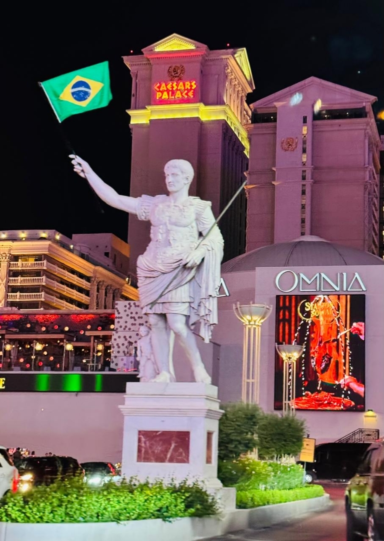 The launch of the betting website caesarsports.com.br in Las Vegas was marked by creativity, with several actions in homage to Brazil. The Caesars Palace statue was installed on the Strip street holding the Brazilian flag, the Ferris Wheel and the Eiffel Tower were lit up in green and yellow, and the video of the platform’s launch was shown on the casino’s billboards on Las Vegas Boulevard during the three days of G2E.