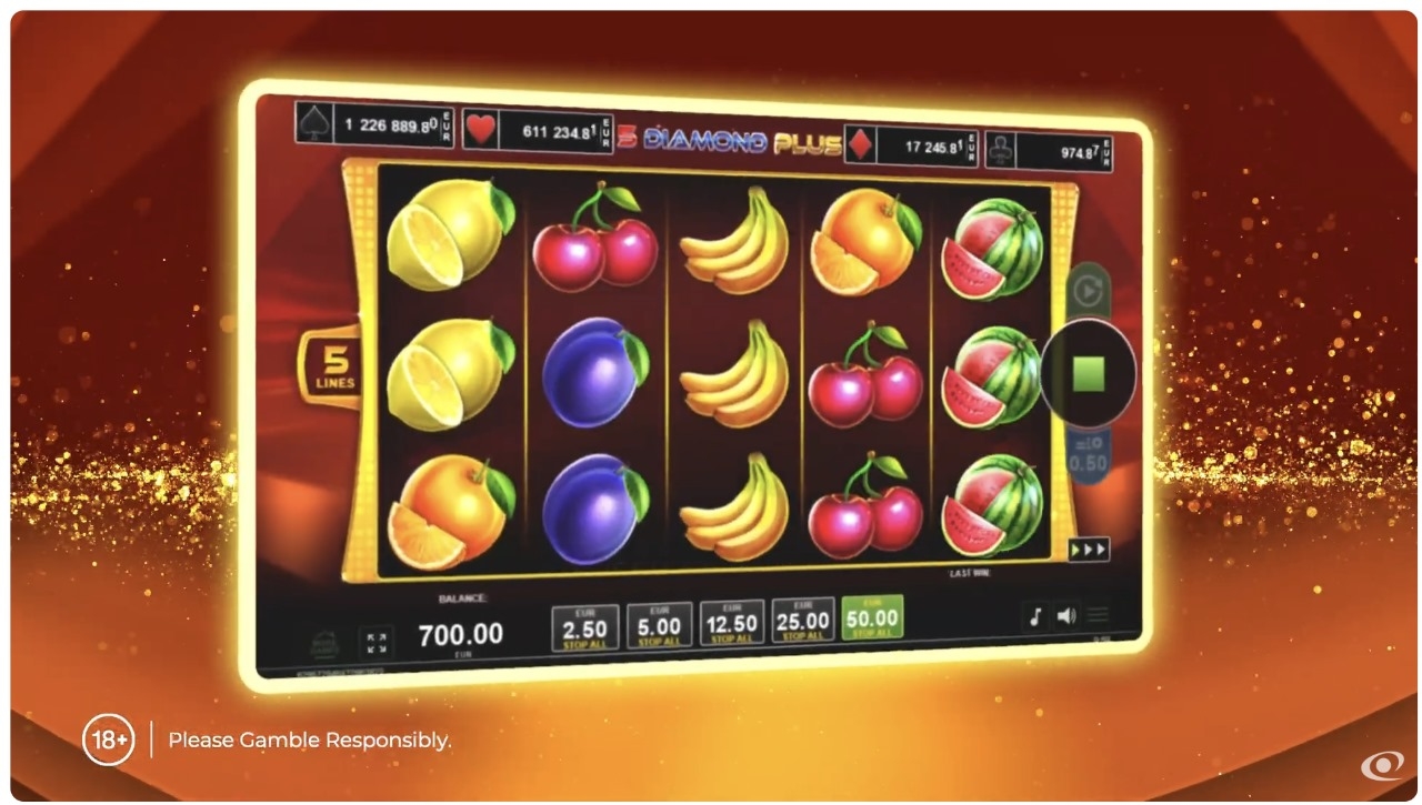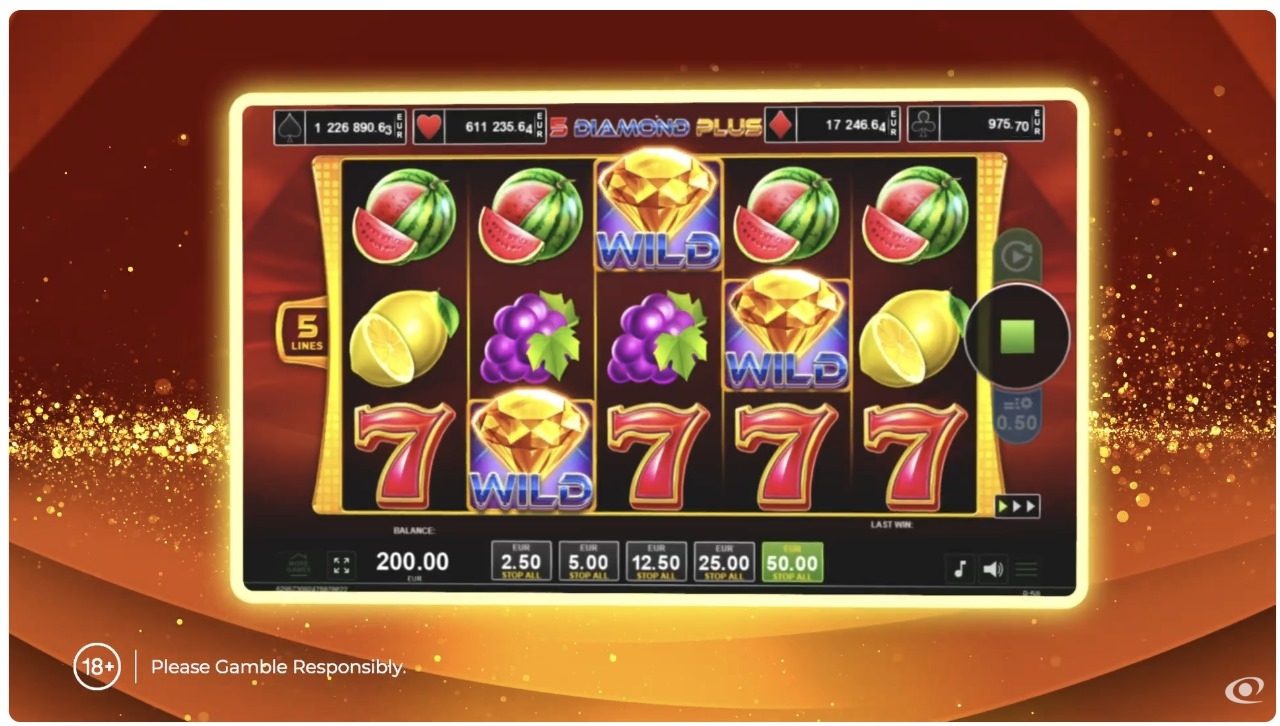 Amusnet presents 5 Diamond Plus, a video slot game that perfectly combines tradition and modernity. The new title offers a classic theme that combines a selection of juicy fruits, a lucky Seven, and the dazzling golden Diamond, which is an Expanding Wild symbol.