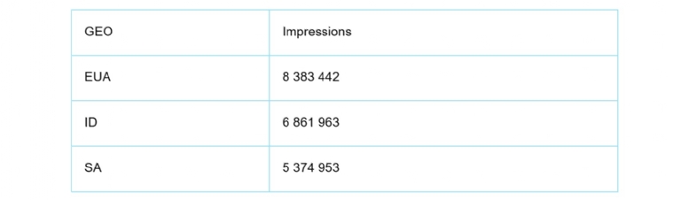 This section analyzes the 3 GEOs with the highest traffic in the last 30 days, noting that this is exclusive traffic and volumes are limited: