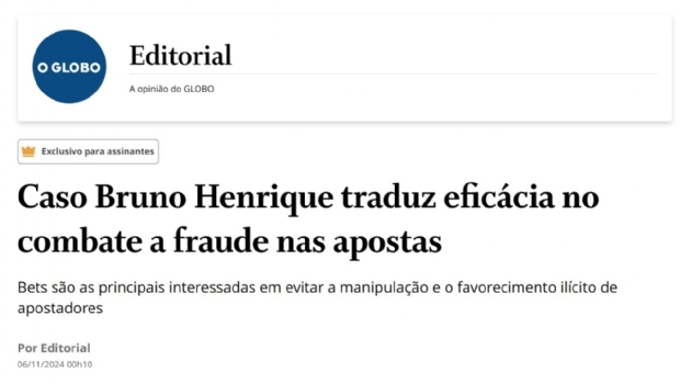 The operation launched yesterday by the Federal Police, with support from the Public Prosecutor's Office, at Flamengo neighborhood addresses demonstrates the effectiveness of the mechanisms used to curb fraud in the sports betting market, which is currently being regulated in Brazil. The main target was striker Bruno Henrique, suspected of having forced a yellow card in a Brazilian Championship match to benefit relatives and friends.