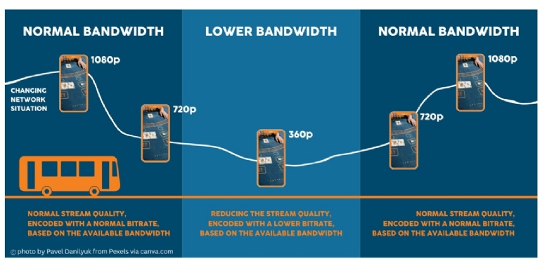 The key to guarantee quality of experience with all network conditions lies in live transcoding and adaptive streaming.