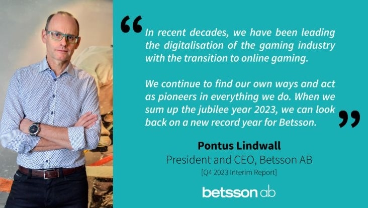 Betsson Group published its year-end report 1 January – 31 December 2023 with a very positive performance. "A new record year for Betsson ended with continued high customer activity and record-strong figures in the fourth quarter," commented CEO Pontus Lindwall.