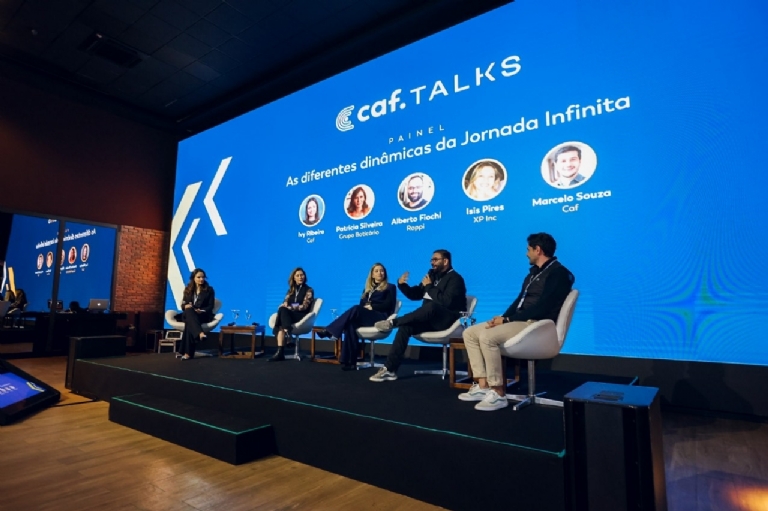 The event featured the panel “The Different Dynamics of the Infinite Journey,” in which Ivy Macedo Ribeiro (Caf), Patrícia Silveira (Grupo Boticário), Alberto Fiochi (Rappi), Isis Pires (XP Inc.), and Marcelo Sousa (Caf) discussed the challenge of creating a journey that is positive for the user but also effectively prevents fraud.