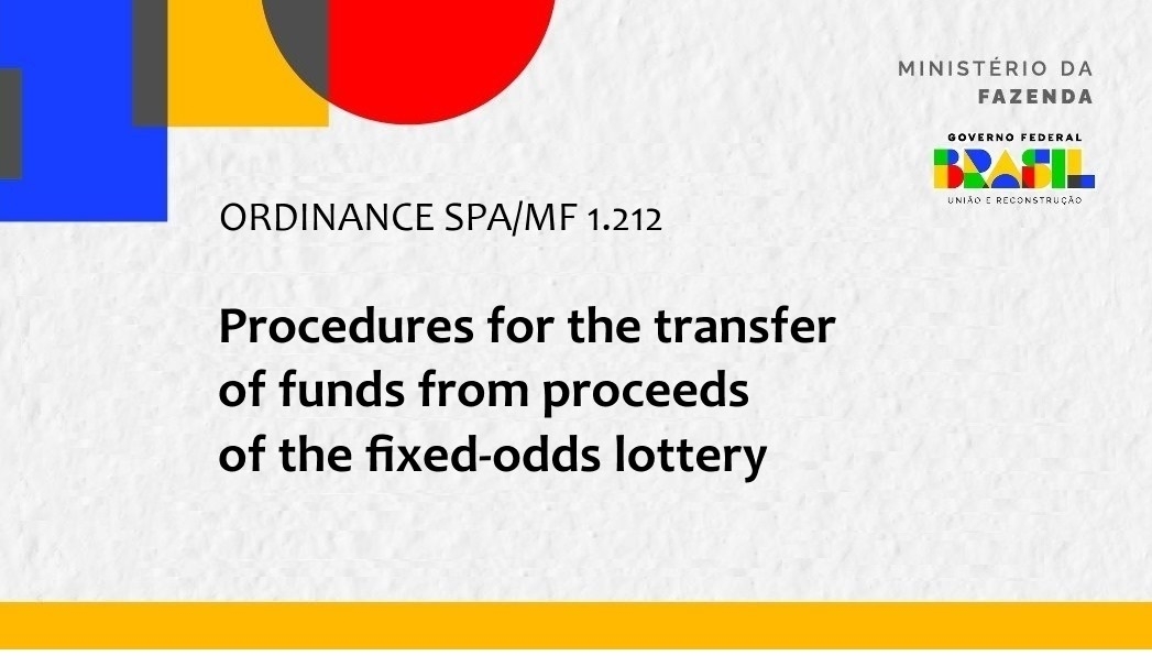 The SPA ordinance establishes procedures for the transfer of funds from the revenue from the fixed-odds betting lottery, as set out in §1º-A of art. 30 of Law No. 13,756, of December 12, 2018.