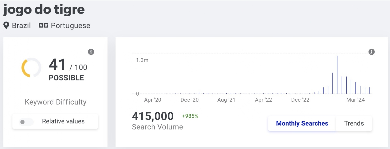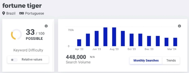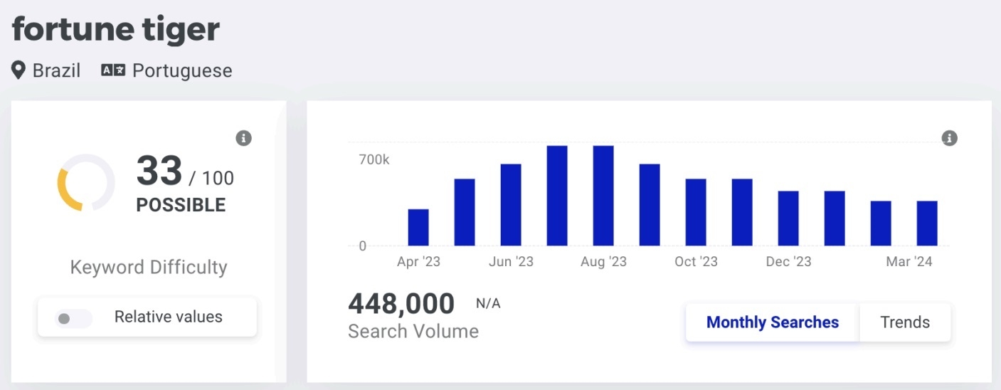 Fortune Tiger, developed by PG Soft, launched in 2022 and quickly became a top favorite in Brazil. By mid-2023, monthly searches for "Fortune Tiger" almost tripled on a monthly basis – from 74,000 in April to 201,000 in May, and from 246,000 in June to 674,000 in July.