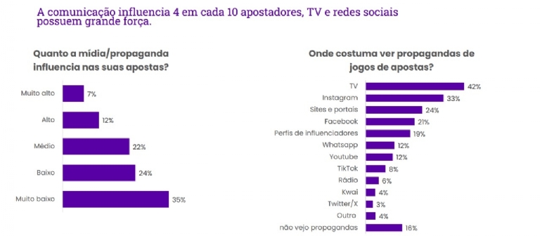 Advertising plays an important role in gamblers’ behavior, with 42% saying they see gambling adverts on TV, 33% on Instagram and 19% being impacted by influencers. Thus, 19% of gamblers reported a “high” level of influence from advertising on their betting decisions.